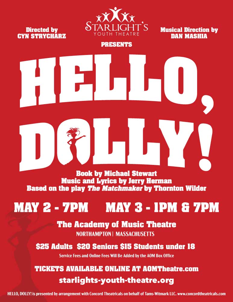 Hello, Dolly! —Grades 7-12 Tickets available NOW! Visit the Academy of Music website to purchase. Hello,