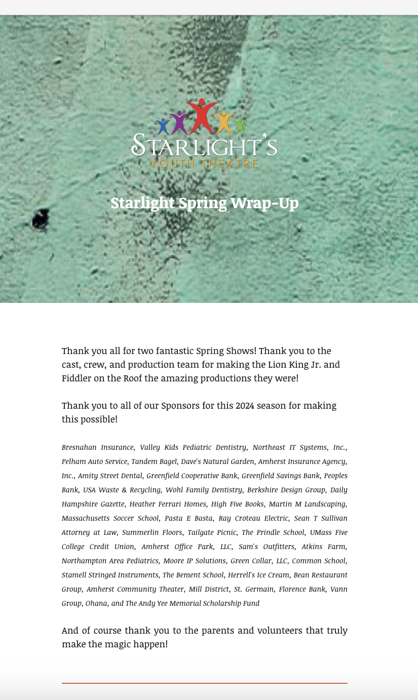 Starlight Spring Wrap-Up Thank you all for two fantastic Spring Shows! Thank you to the